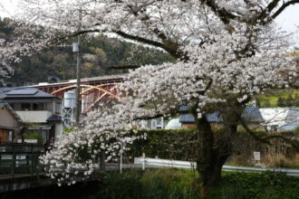 御殿場線の両側の桜並木を橋渡しするように、橋が数本かかっています。