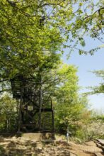 展望台のてっぺんまで登ると、生えたてほやほやの新緑の山頂に飛び出る。