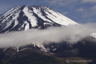 天候は回復予報だが、富士山は雲を被ったり覗いたり。
