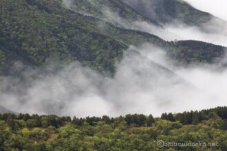 山の尾根と尾根の間を埋める雲海が見られるのも、もこんな日ならではか。