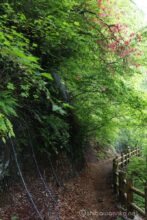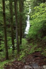 渓谷道をしばらく行くと、対岸にも滝が落ちる。