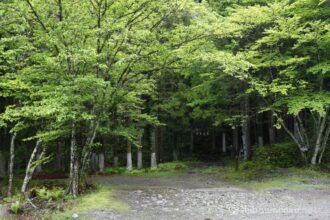 05:30 軽く山装備を整えて、裏見の滝駐車場をスタート。