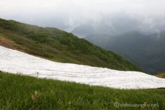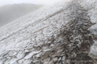 雪渓を横断すると夏の北アルプスを思い出す。そういえばそろそろそんな時期か。