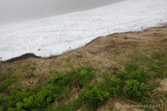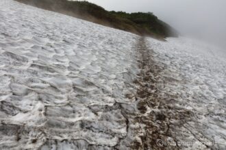 ヒメサユリにお別れして、ひんやり雪渓ゾーンへ。