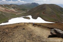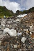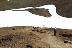 旭岳山頂からの雪渓までの下り坂が、これがまたガレて滑りまくる。