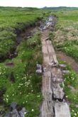 夫婦池に行く途中から、チングルマの大規模なお花畑が展開する。