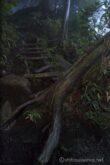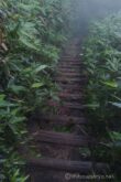 分岐からすぐに、滑りに滑りまくる木道の階段が続く。
