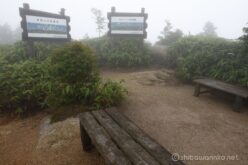 事前の調べの通り、全く展望がない頂上だった。しかもガス。