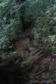 滑りやすい木道を通って、杉(檜?)林を進むと滝音が。