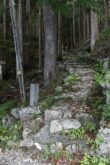 針葉樹林の中、歴史を感じさせてくれる石畳の塩の道が続く。