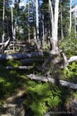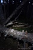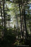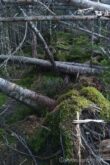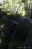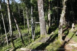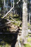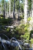 山頂から急登を軽やかに下ると、また倒木が重なる”横”の景色が展開する。