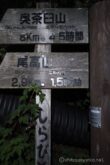 登山口には案内板が立ち並び、奥茶臼山まで4.5時間とある。