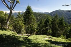 頂上手前の開けた所からは、加加森山と光岳が広がる。