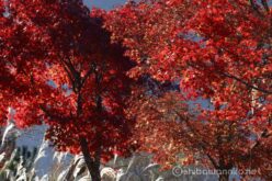 久しぶりに見る秋の青空と真っ赤な紅葉が眩しい。