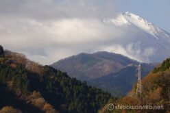 紅葉と山の端からは、雪をまとった富士山の頂上が見え隠れ。