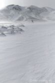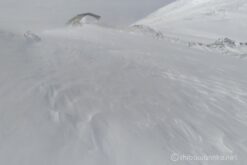 スキーを担いだとしても強風に煽られるし、デポするにしてもすべてが飛ばされそうな風の勢いだ。