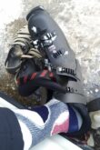 まずはスキー靴にアイゼン調整をしたり、シールを貼ってみる。