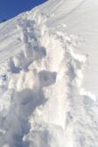 こんな急斜面のグサグサな雪面、スキーで下りるのは怖い。