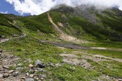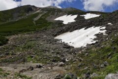 このあたりで高山植物を撮るためのマクロレンズを車に置いてきたのに気づく。もう戻れないので、このまま進む。今までコマクサとかたくさん撮ってきたので、今日はもう高山植物撮影はよしとする。