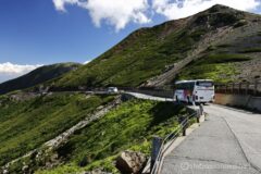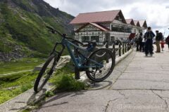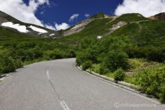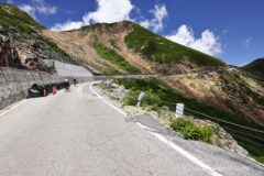 完全な森林限界になって、最高の景色が展開し始める。他のサイクリストたちはみんな「ハァハァ」と粗い呼吸をしてるけれど、自分ラクラク。抜くのは申し訳ない感が若干あるけれど、電動アシストと人力でどうしようもない速度差が出てしまうので、抜かさせてもらう。