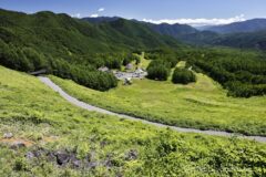 緑と青と白の3色だけの高原の夏景色。今日は猛暑日だけど、標高が高いので適度に暑いくらいで気持ちがいい。