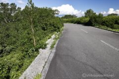 電動アシストの威力は、アシストレベル「中」でやや軽くペダリングして、この最強ローディーさん達と同じペース。最強のターボモードにすると、一瞬で抜いて引き離せるくらいの威力。最後の県境ゲート直前では、後ろに付いていると気にされるだろうと思って、写真を撮るポイントもなくなってきたので一気に抜かさせてもらった。