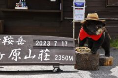 クマちゃんがお出迎え。写真撮って先を急ぐ。今日は乗鞍岳登山もするので、遅いスタートではあるものの、なんとか雲がかかる前に登りたい。