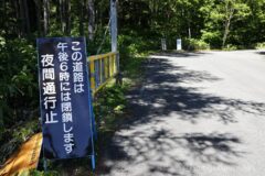 ゲート前に「夜間通行止」の看板あり。夜間通行止めでなければ、夜間にヒルクライムとナイトハイクして山頂朝焼けという、いつものナイトハイク+朝焼け撮影の計画が取れるのに残念。今日も当初はその予定だったのだけど、夜間通行止めを知って、霧ヶ峰と順序を入れ替えて朝焼けは霧ヶ峰で撮ってきた。