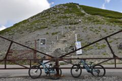 登山者かサイクリストかの違いは、自転車用のヘルメットをかぶり、膝上までのサイクルジャージ(ピチピチタイツ)を履いているので一目でわかる。標高差1,200mのヒルクライムをした後に登頂してしまうサイクリストがこれだけ多いとは思わなかった。