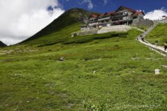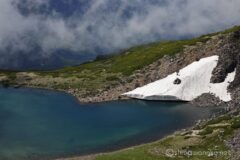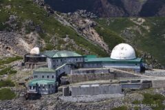 老朽化が目立つ観測所。さらにボロくなったんじゃないかな。w 雪渓残る権現池と雲。いいなぁ~。