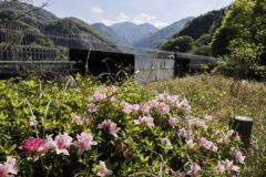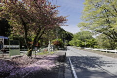 丹沢湖バス停付近に残っている八重桜を撮って回る。落下した花弁がピンクの絨毯になっていて、丹沢湖の桜の季節はもう終わり。代わりにツツジが少し。