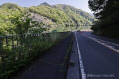 仕方がないので世附大橋まで戻って、一周サイクリングを続行する。世附大橋を渡って、湖畔南側のルートに入り三保ダムまで。今度は呼び止められることはなかった。