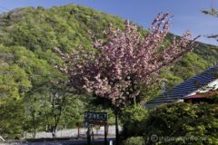 08:30 八重桜が残る玄倉着。新緑美しい丹沢湖一周サイクリングだった。紅葉の時期も、自転車で紅葉と撮って回れたら楽しいはず。