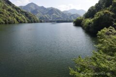 振り返れば、バランスのよい三保ダムの景色。三保ダム、よいところだった。秋の紅葉が目が覚めるくらい綺麗なので、秋の季節もお勧めの紅葉スポット。