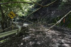 三保ダムまでの湖畔南側のルートは、通る者がいないので落石に倒木に荒れ放題。丹沢湖を一周するのは、唯一この区間が懸念材料か。ワイルド感たっぷりだが、道は広く舗装も痛んでいるわけではない。ツルツルのスリックタイヤを履くロードバイクでも、落石等を避けて通れば特に問題なし。