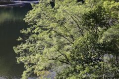 湖面を見れば、透き通るような淡い新緑が湖面を覆う。対岸の山は新緑と針葉樹の濃淡くっきり。ときおり風が止めば、湖面が鏡面となり新緑を映し出す。新緑の僅かな期間だけ見れる美しい景色。どうせ来るなら新緑の美しい時期に訪れたい。