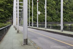 相模湖ICを過ぎると、相模湖南岸に渡る吊り橋あり。吊り橋を渡って国道20号線とお別れした方が車通りが少なく楽しく走れそう。しかしどこまでが相模湖でどこからが相模川なのかがよく分からない。相模湖をフルに一周したいので、念のためそのまま国道20号線を走ることに。