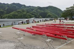 相模湖大橋からすぐに相模湖公園。ここも毎回車で通り過ぎるだけで、立ち寄った記憶がない。県立相模湖漕艇場があり、漕艇のボートが並ぶ。へぇ、相模湖ってボートが盛んなところだったのね。競技用だけでなく、観光用の白鳥さんやクジラさんもいる。相模湖公園は、相模湖周辺で唯一ある平地といった感じ。