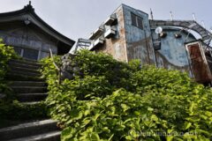 山頂標識を探してさらに上ると、廃墟と山頂社が一緒に建っているではないか。これはなかなかないパターンだ(いや、初めてだ)。晴れ渡った山頂から佐渡全島を見渡したら、目的をすべて達成したからか、なんかスッキリ。