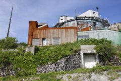 15:10 サドイチ(佐渡島一周サイクリング)を終えて疲れた体に鞭打って、サックリ金北山登頂。山頂が廃墟って、なんだか滅入る。これは聞きしに勝る立派な廃墟だ。w