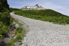 二ノ岳から一度下りてから、金北山へ登り返し。最終コーナーを回れば、眼前に現れる山頂廃墟。