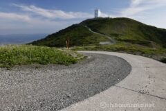 舗装路と砂利MIXの登山道を登っていけば、すぐに今日の目的地の金北山山頂が見え始める。見える各ピークには、レーダーやら基地やら人工物がたくさん生えている。山登りとしては、なにか不思議な光景。