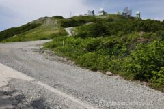 途中の二ノ岳の山頂に立つレーダー群がすごい。つられて二ノ岳山頂に少し登ってしまったが、ルートは直進せず、二ノ岳山頂を左から迂回する。