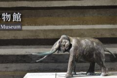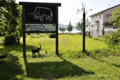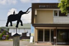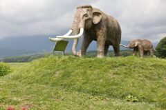 野尻湖からすぐのところに、野尻湖ナウマンゾウ博物館あり。あちこちにオシャレないろんな象さんいる。視界にいったい何体の象さんいるんだろう?ナウマンゾウ博物館前には、リアルなナウマンゾウ。