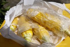 最後は信濃町のもろこし街道直売店へ。開店したてなのにトウモロコシを買い求めるお客さんでごった返している。前回来たとき、shibawanwanが車の助手席で、あまりの美味しさに汁を飛び散らせて食い付いていたトウモロコシ。これはお土産に買って帰らないとね。