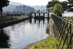 08:30 野尻湖に流れるこむ池尻川を渡ればゴール。山が半分でヒルクライムがあるのはびっくりしたけれど、湖と山の景色が綺麗で変化に富むよい野尻湖一周サイクリングでした。