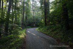 そんな気持ちの良い湖畔ロードが続くのかと思いきや、癒しの森像の小径という陸地が湖に飛び出た地点に差し掛かると、巻きに入っていきなし軽いヒルクライム。像の小径には、森林セラピーコースの遊歩道が整備されている。ダートで電動MTBうってつけの道だが、「遊歩道につき車乗入れ禁止」とのこと。車ってMTBもダメなんだよね?う~ん、残念。湖畔のダートを電動MTBで快走したかったのだけれど。