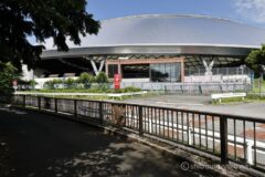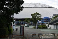 そして初めて来る、ベルーナドーム。正面まで来たけれど、自転車は駐輪場に止めなければならないらしく、暑いので入口までで終了。