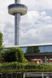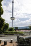 気持ちのよい一直線の堤体を、景色を楽しみながらゆっくり抜けると、眼前に鉄塔が立つ。展望台っぽいのが付いているけれど、塗装が剥がれていてどことなく廃墟感も感じる。後で調べてみると、西武遊園地の富士見展望塔でした。「西部」という名が付くエリアになかなか縁がなくて、見るものすべてが初めてで斬新斬新。