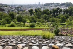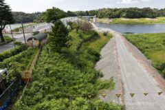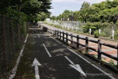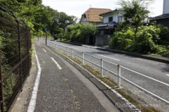 陸橋を過ぎると、西半分の森林浴コースとは景色は変わり、住宅街を見るようになる。ここでも自転車ロードはまだまだ続く。いったいこの自転車ロードどこまで続くのだろう?と思っているうちに、多摩湖堰堤南岸ゲートに到達。